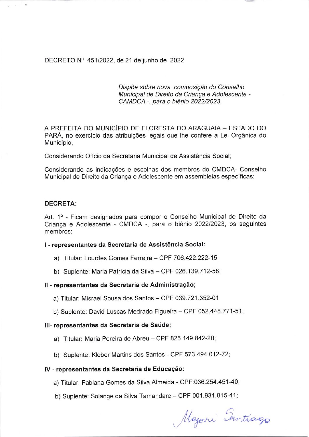 DECRETO N° 451-2022 CMDCA