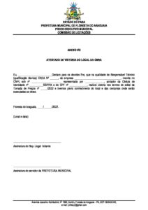 ANEXO VIII- ATESTADO DE VISTORIA DO LOCAL DA OBRA
